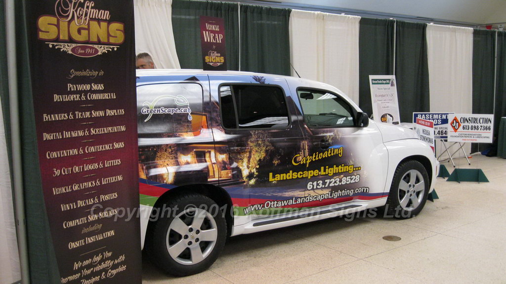Decals can be made to cover the side and rear windows on a vehicle, but for safety reasons, the front windows used by the driver are not covered. The decals on side windows are typically perforated so that it is still possible for passengers to look outside. This See-through graphic technology originated in the 1980s, with the first dominant patent registered by a British company called Contra Vision. Wrapped advertisements must often be divided into several smaller pieces to appropriately cover any movable panels on the vehicle, such as the fuel tank cover, trunk (boot) openings, and other doors.
